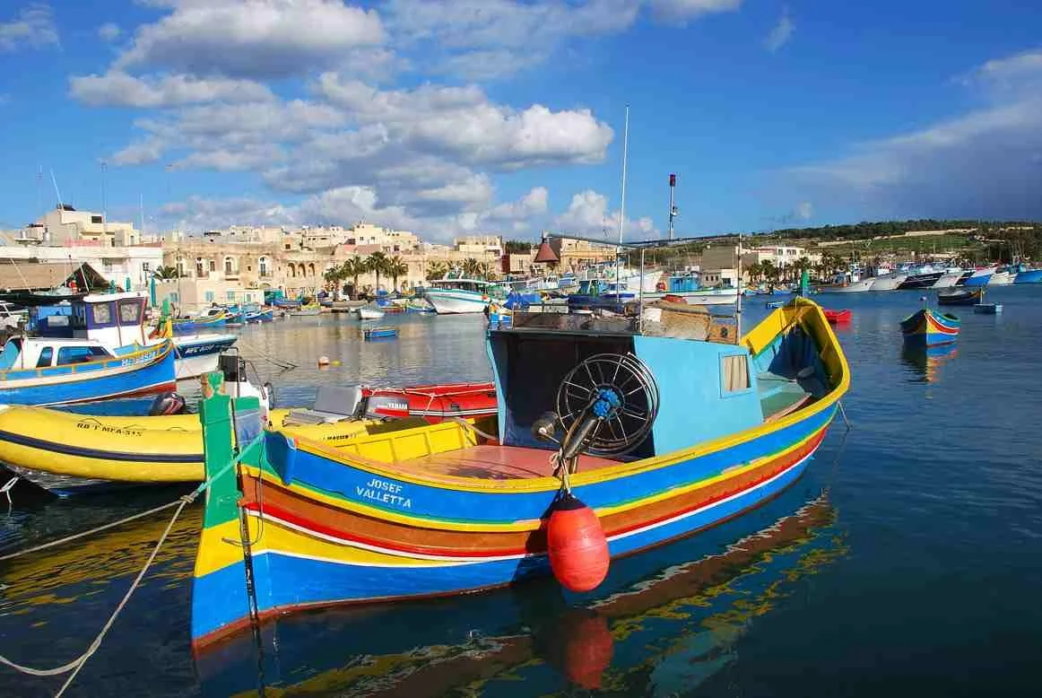 No lejos de la capital de la isla encontramos el pueblo de pescadores de Marsaxlokk, en el que se pueden ver y fotografiar esas barquitas de colores tan representativas de Malta.